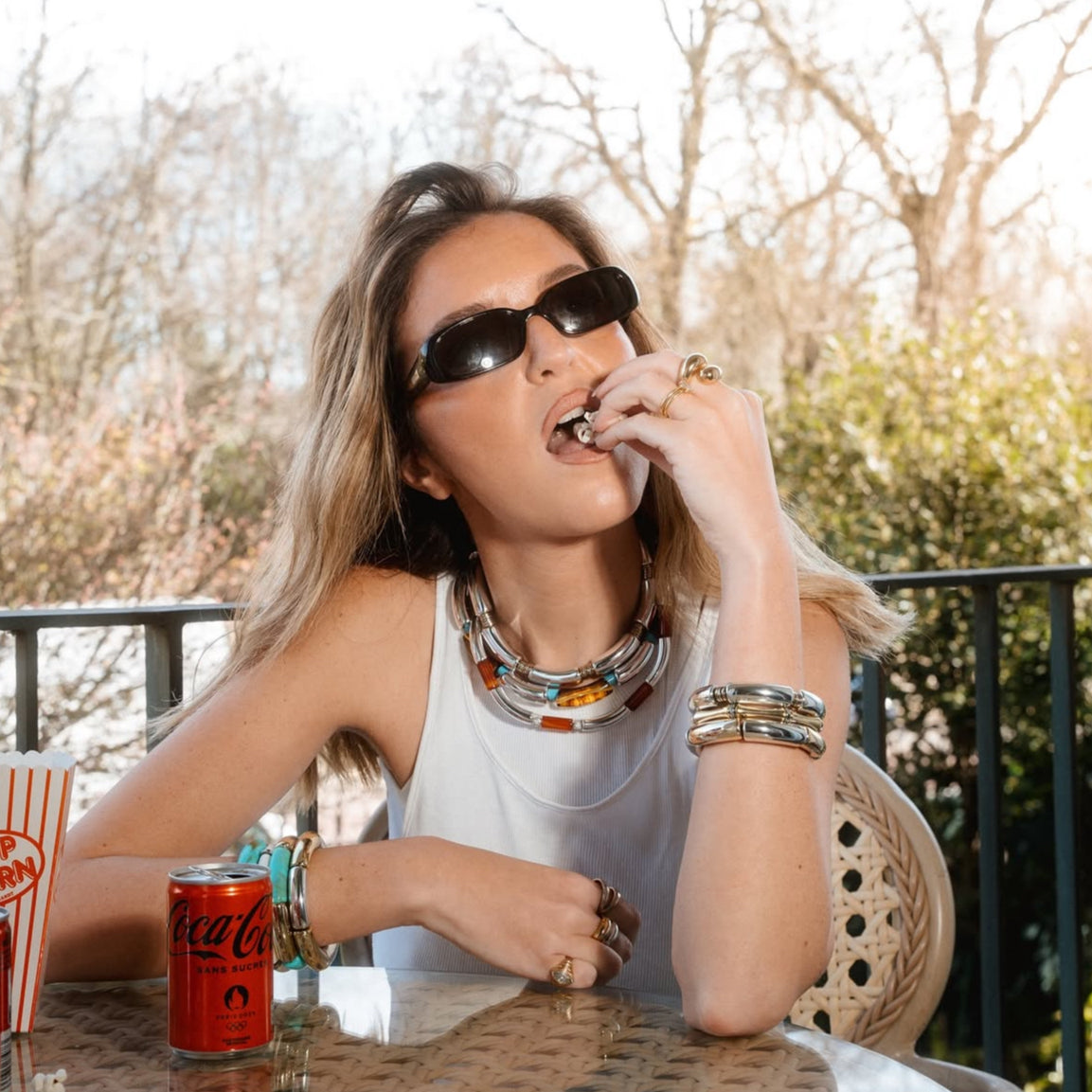 Une collection audacieuse, au style résolument rock chic, qui habille instantanément une tenue à porter seules pour un look affirmé ou en stacking pour un style encore plus iconique.