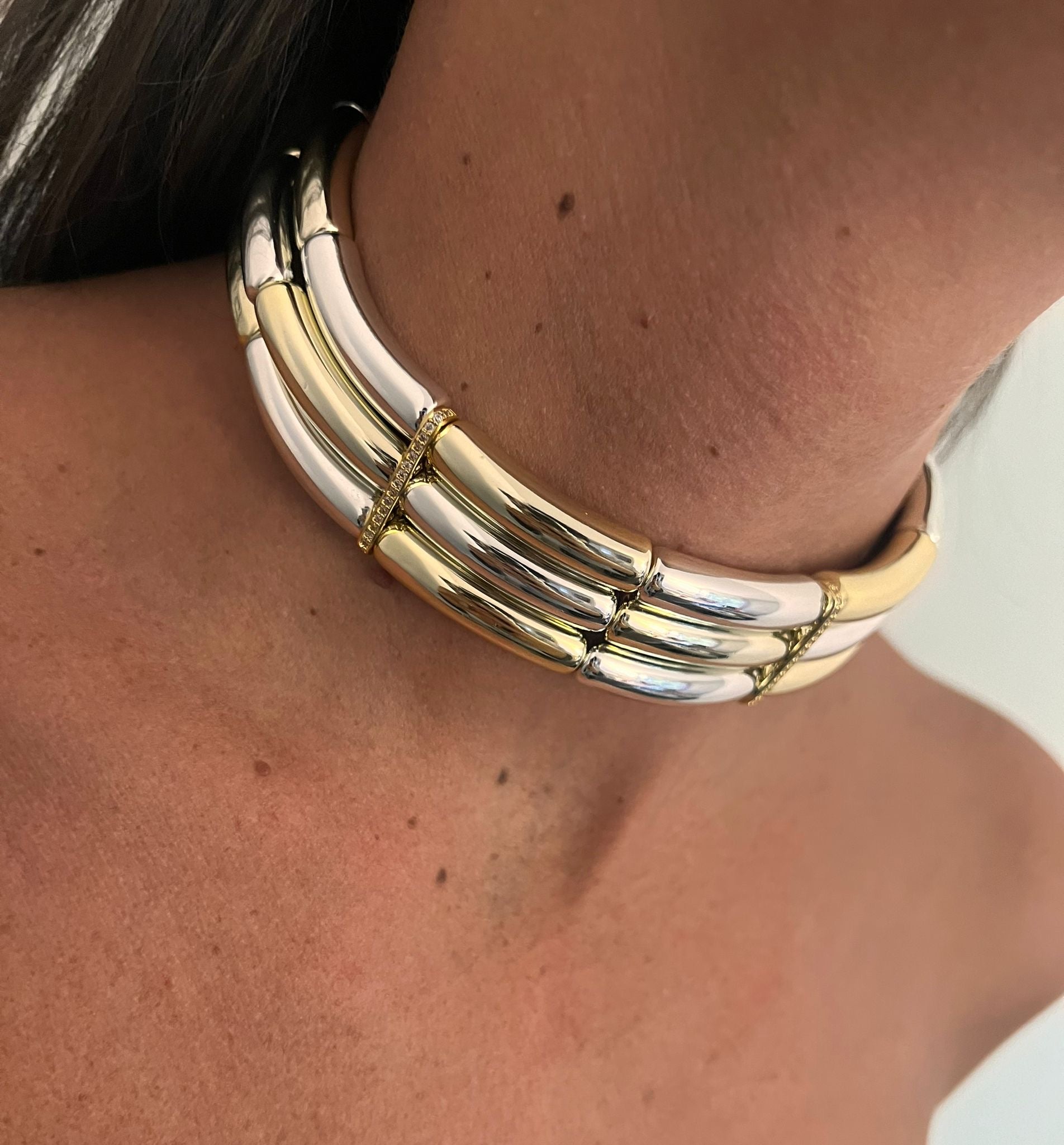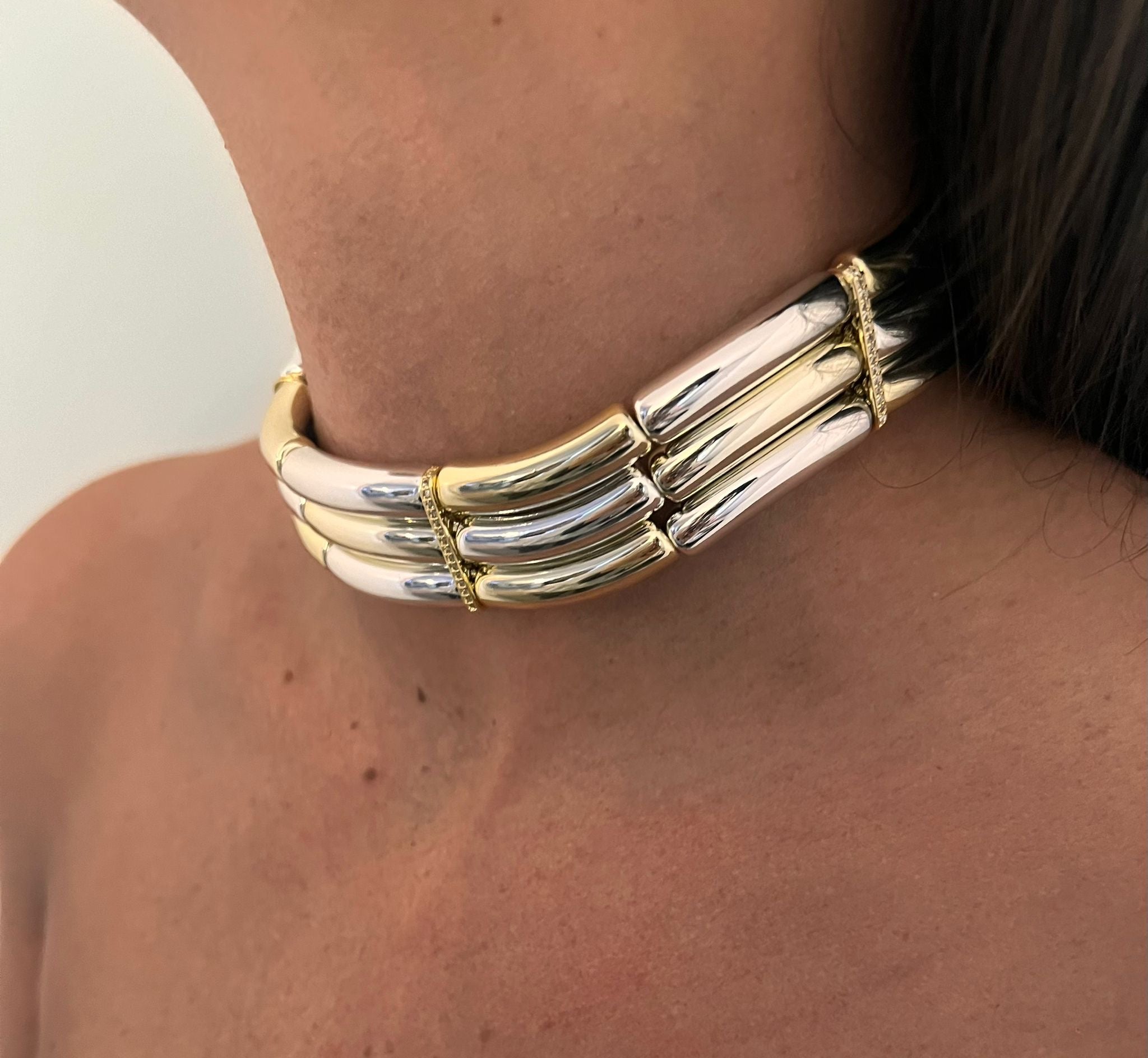 Le Choker Diana est un ras-de-cou composé de tubes au design audacieux, pensé pour apporter caractère et modernité à votre look.