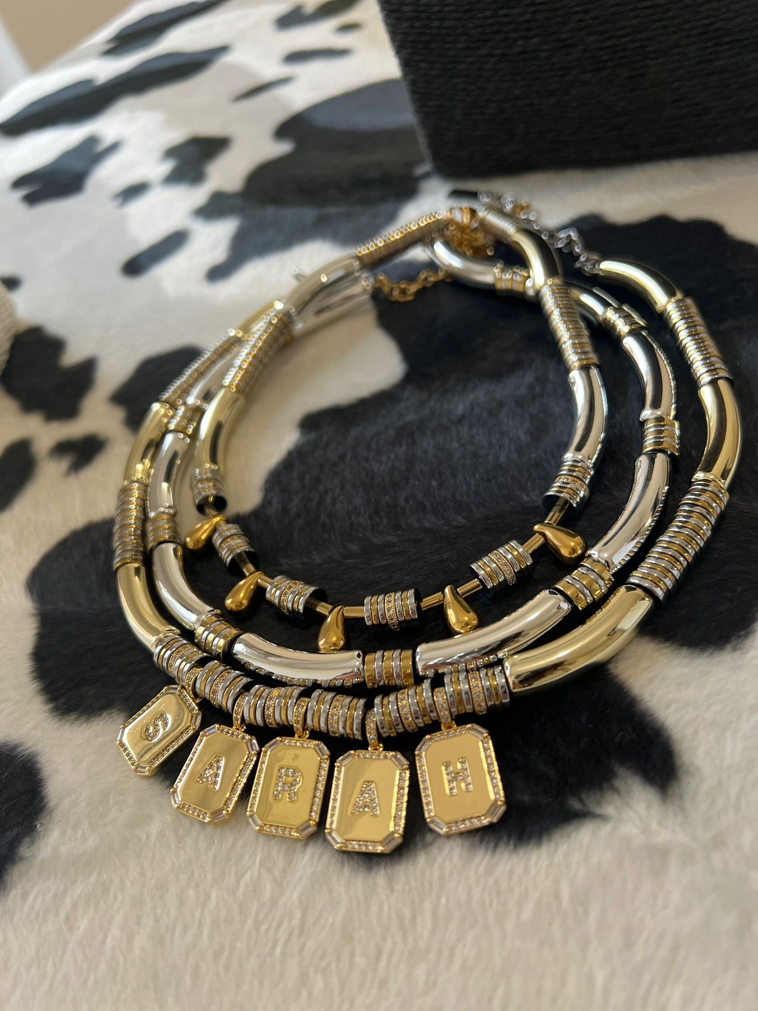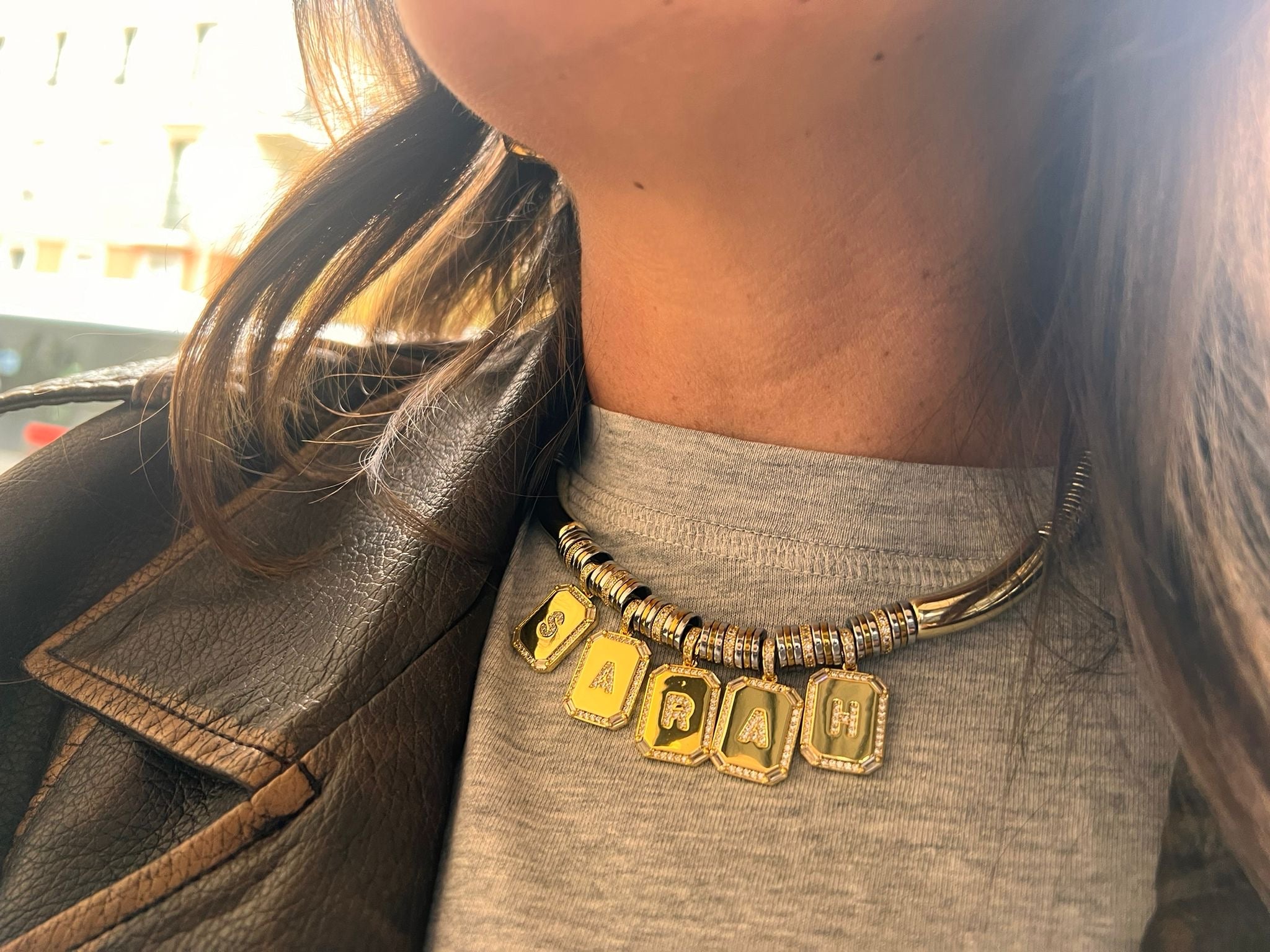 Pour le Collier Alpha : merci de cliquer sur la case “A-Z”, puis d’ajouter le produit au panier. Indiquez ensuite dans l’espace “Bon de commande” le prénom ou les initiales souhaitées.