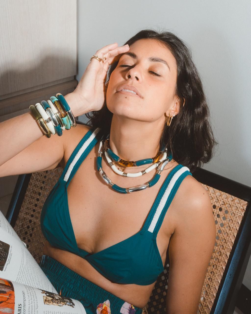 Le détail solaire qui fait toute la différence. Léger, brillant, pensé pour sublimer une peau hâlée et apporter une touche d’été à chaque look. À porter seul pour un style minimaliste ou accumulé pour un effet plus mode. L’accessoire parfait pour des silhouettes effortless, du matin jusqu’aux soirées d’été.