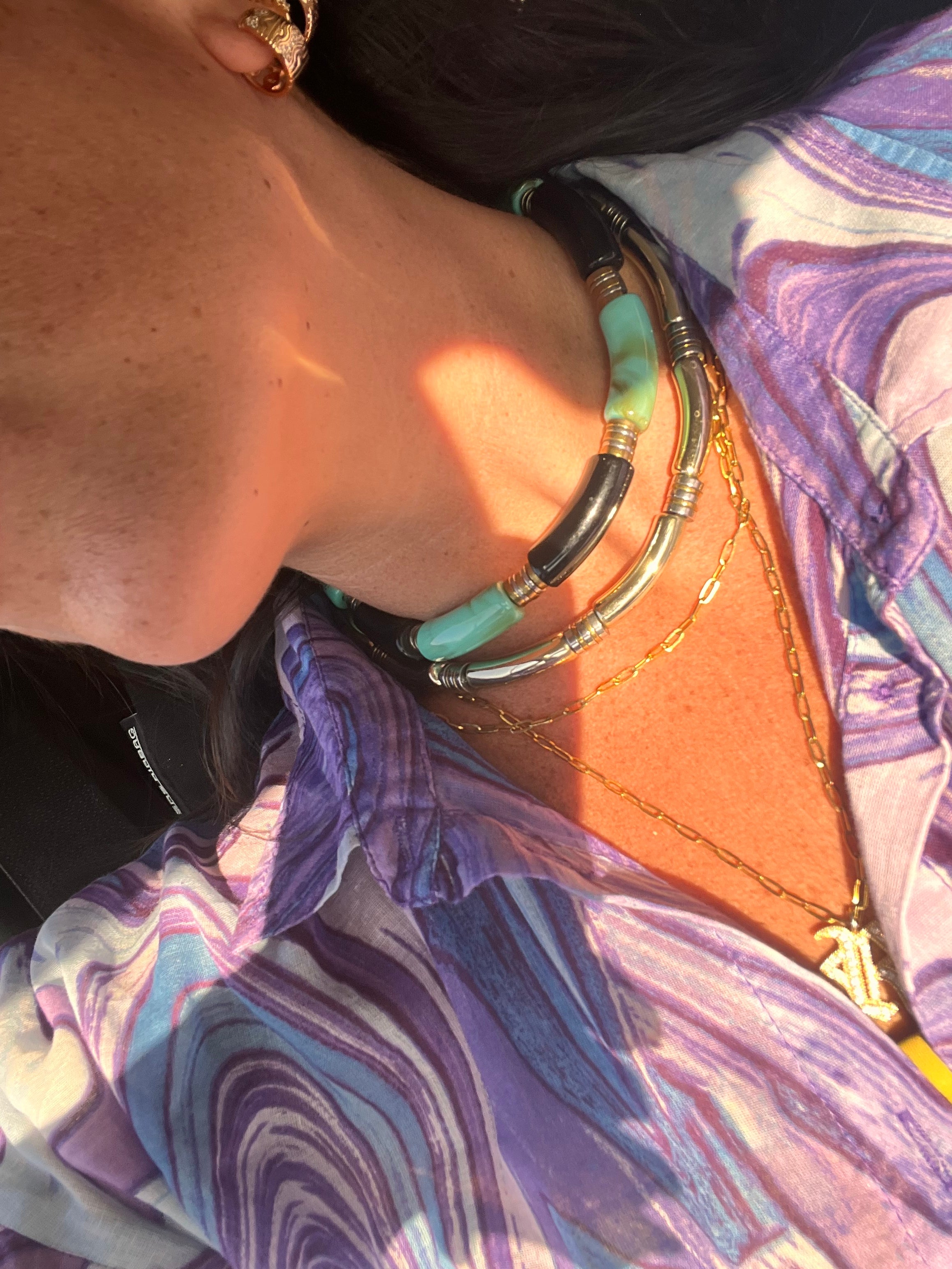 Chaque collier est doté d’une chaîne ajustable pour s’adapter à toutes les longueurs et permettre un stacking parfait.