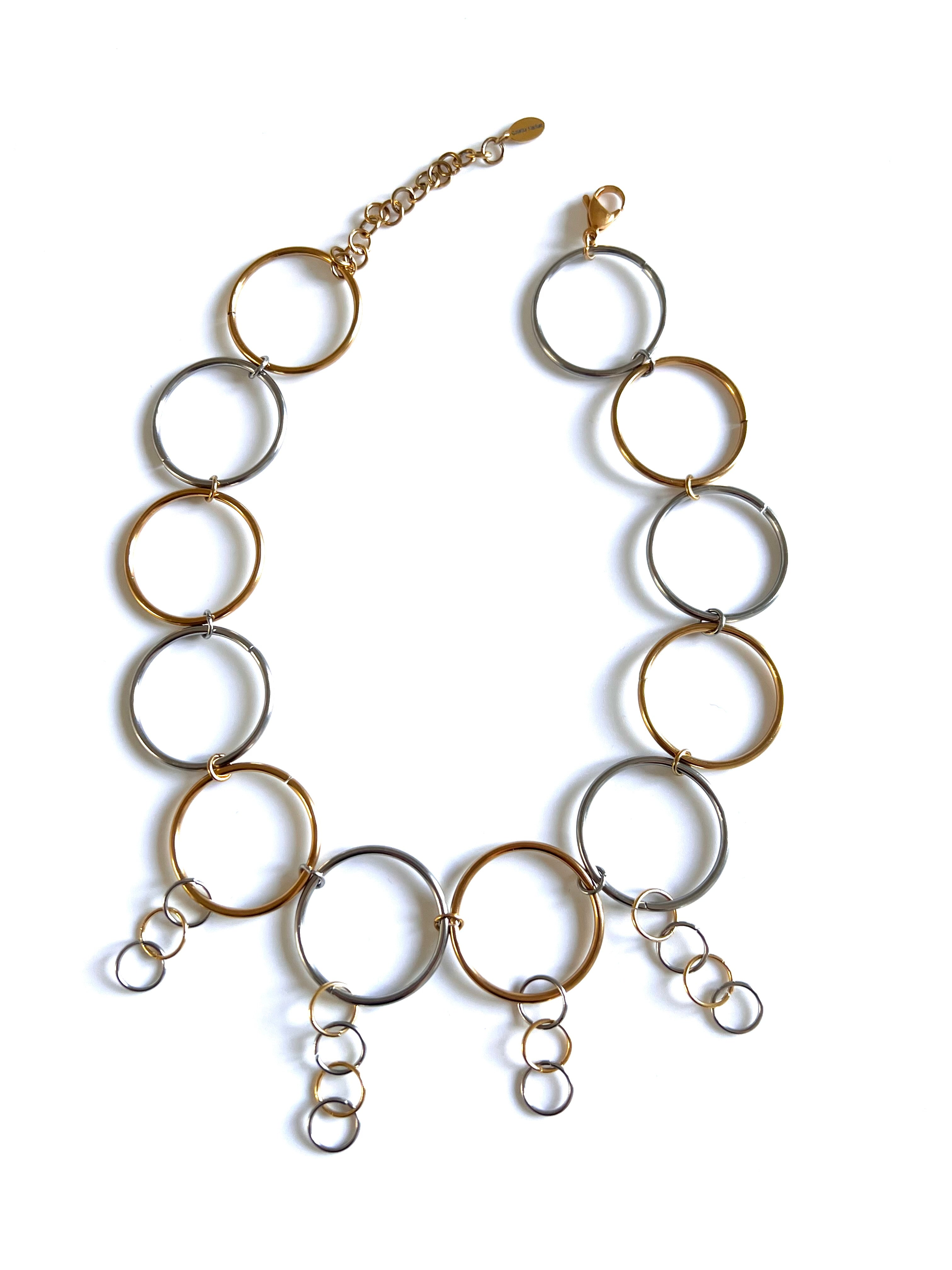Notre collier Circle est le modèle le plus audacieux de la nouvelle collection. Il se distingue avec son originalité, et sera la pièce parfaite pour habiller votre tenue ou robe de soirée.