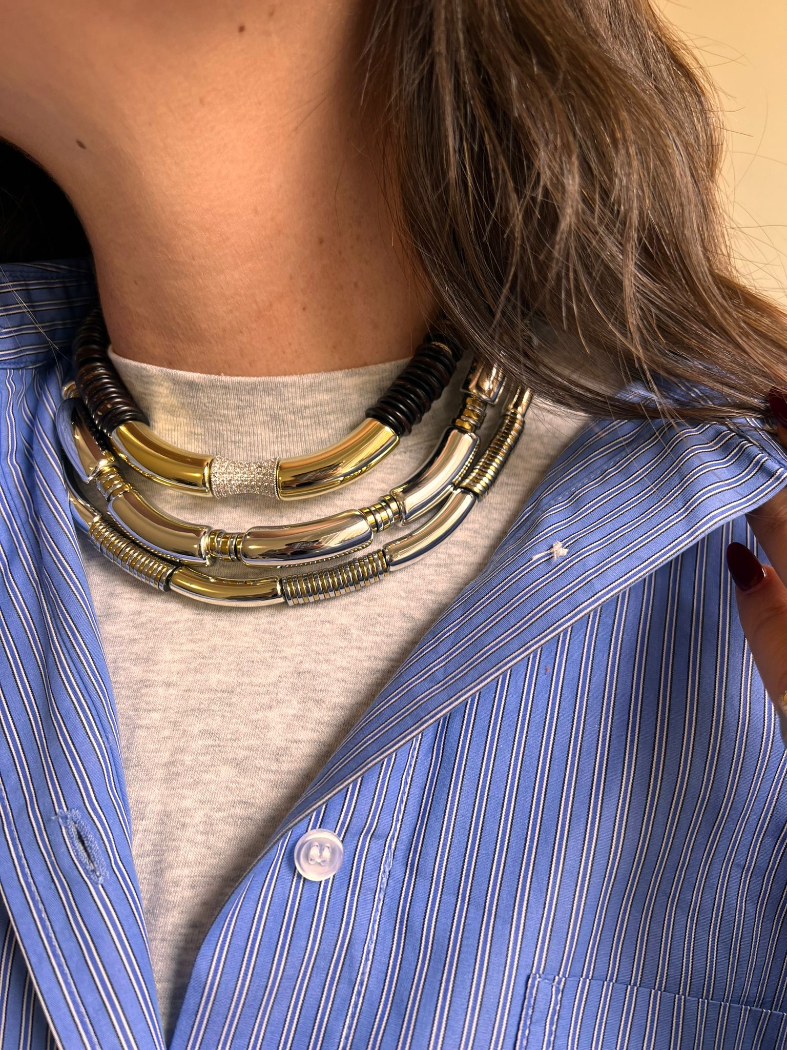 Chaque collier est doté d’une chaîne ajustable pour s’adapter à toutes les longueurs et permettre un stacking parfait.