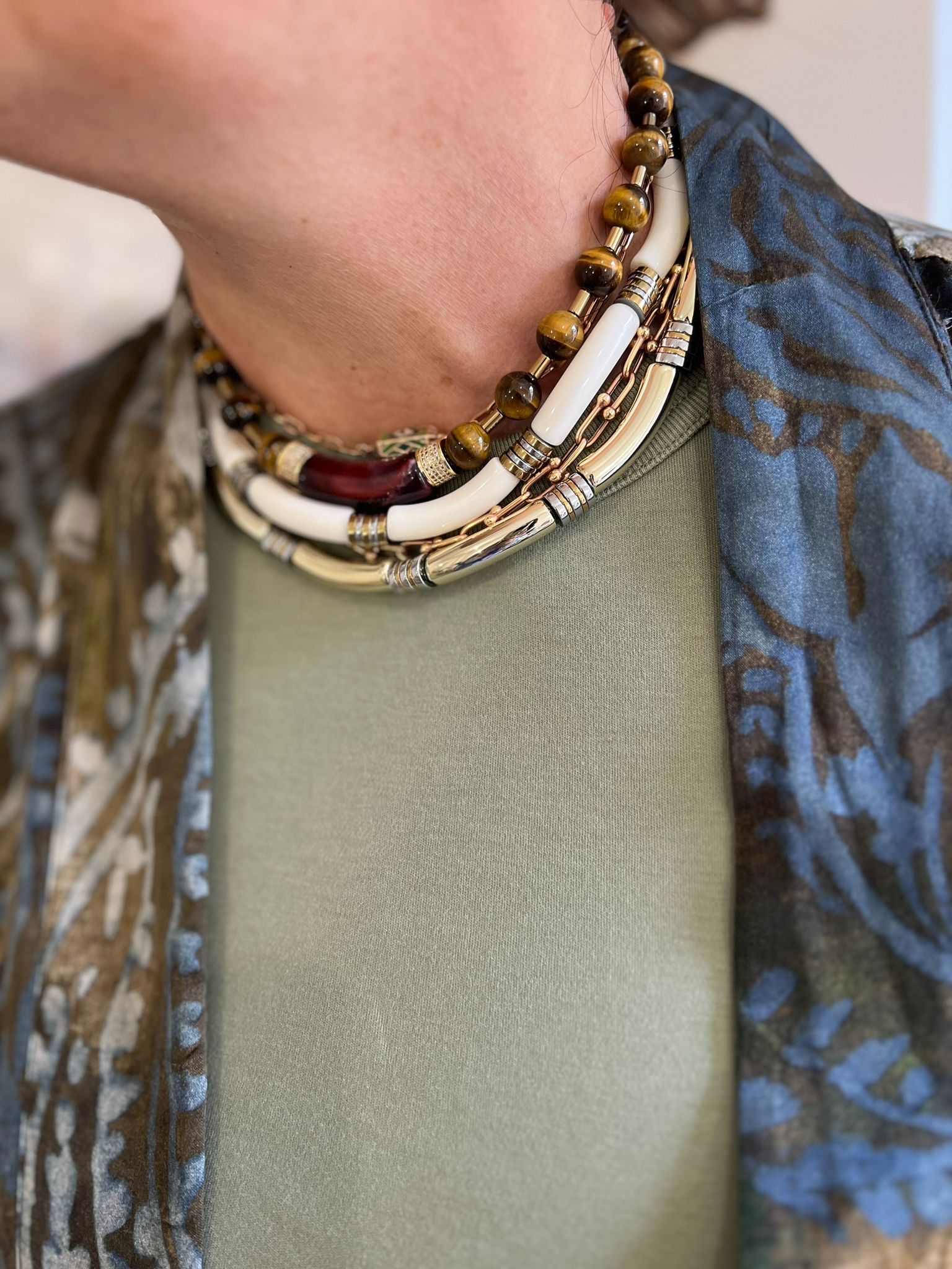 Chaque collier est doté d’une chaîne ajustable pour s’adapter à toutes les longueurs et permettre un stacking parfait.